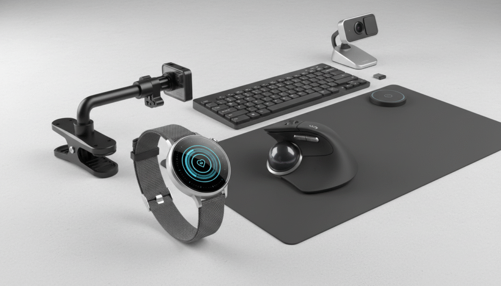 Brands is the home for name-brand tech and durable peripherals you rely on daily. This category brings wearables (smartwatches), webcams, keyboards and mice, trackballs, and camera accessories like GoPro mounts, so you can kit out an office, home, or on-the-go setup with confidence. Look for features such as sapphire glass, IP68/5ATM water resistance, low-latency input, long-range wireless, GPS and health tracking in wearables. Typical uses include video calls, fitness monitoring, and productive work. When buying, check compatibility, battery life, connectivity (Bluetooth or USB receiver), and OS support. Back to the Office and Boxed2me.