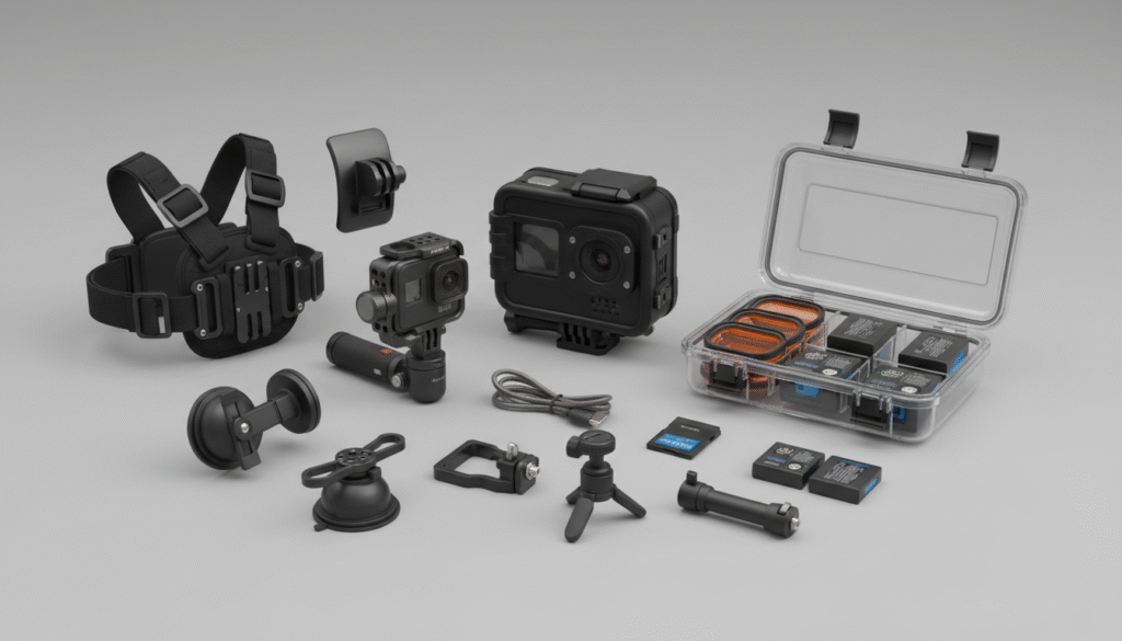 Camera Accessories encompass mounts, housings, filters, batteries, memory cards, cases, and stabilization gear—add-ons that expand how you shoot and protect gear. This category includes helmet, chest, car, and suction mounts; rugged weatherproof housings; and modular kits that combine several pieces for a custom rig. For GoPro and action-camera users, bundles from trusted retailers can simplify setup.