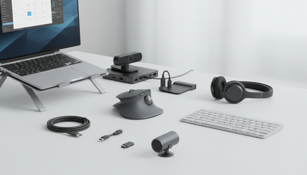 Key features to consider are connectivity options (wired, Bluetooth, or wireless dongle), platform compatibility (Windows, macOS, Linux, Android, iPadOS), ergonomics, button count, DPI/sensor precision, and build quality. Variations range from ergonomic input devices and compact keyboards to high-definition webcams and versatile hubs that support multiple displays and charging. Durable materials and long battery life are nice-to-have bonuses.